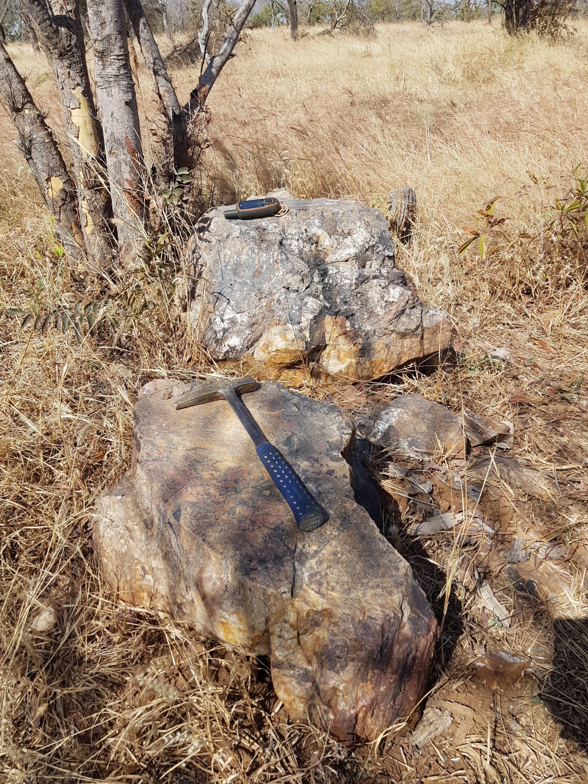 Artisanal mining pits at Lawa East targeting near-surface quartz vein material