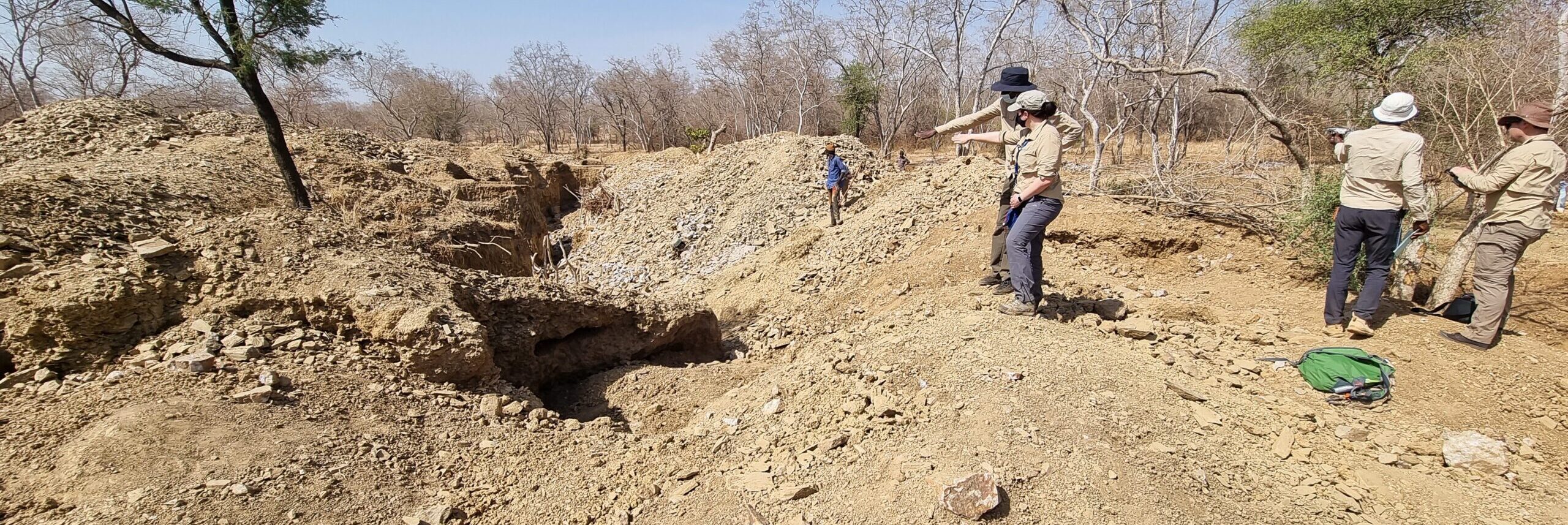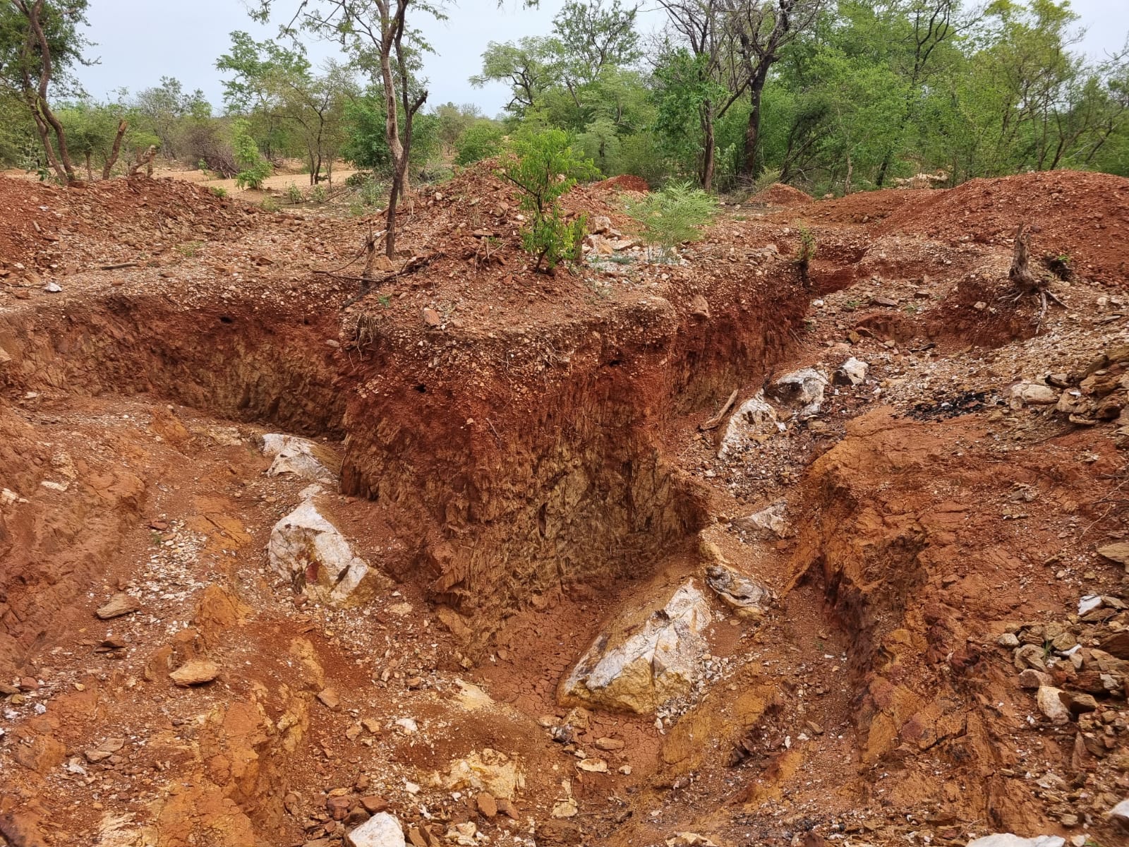 Artisanal mining pits at Lawa East, exposing shear- and extensional-related quartz veining
