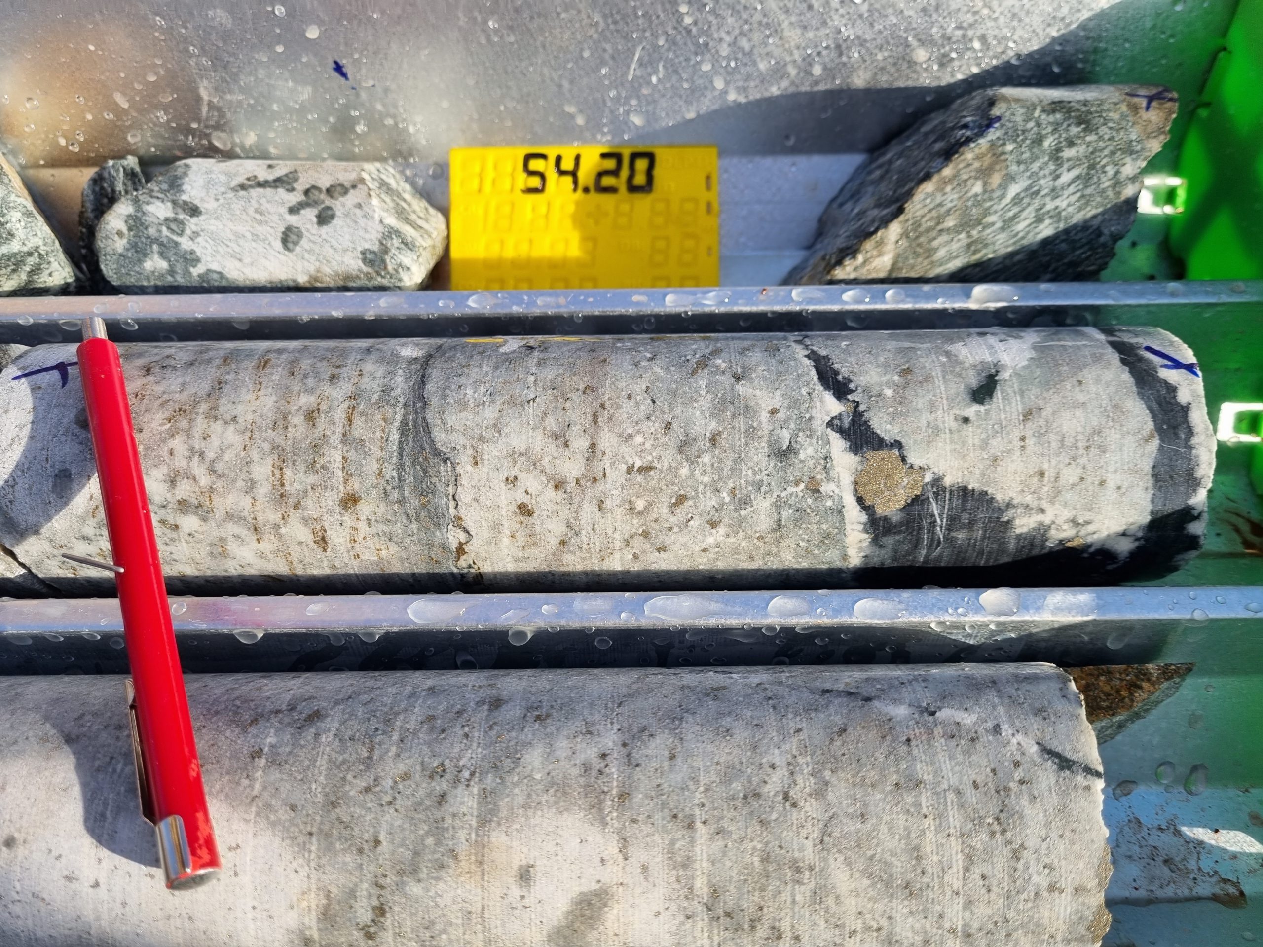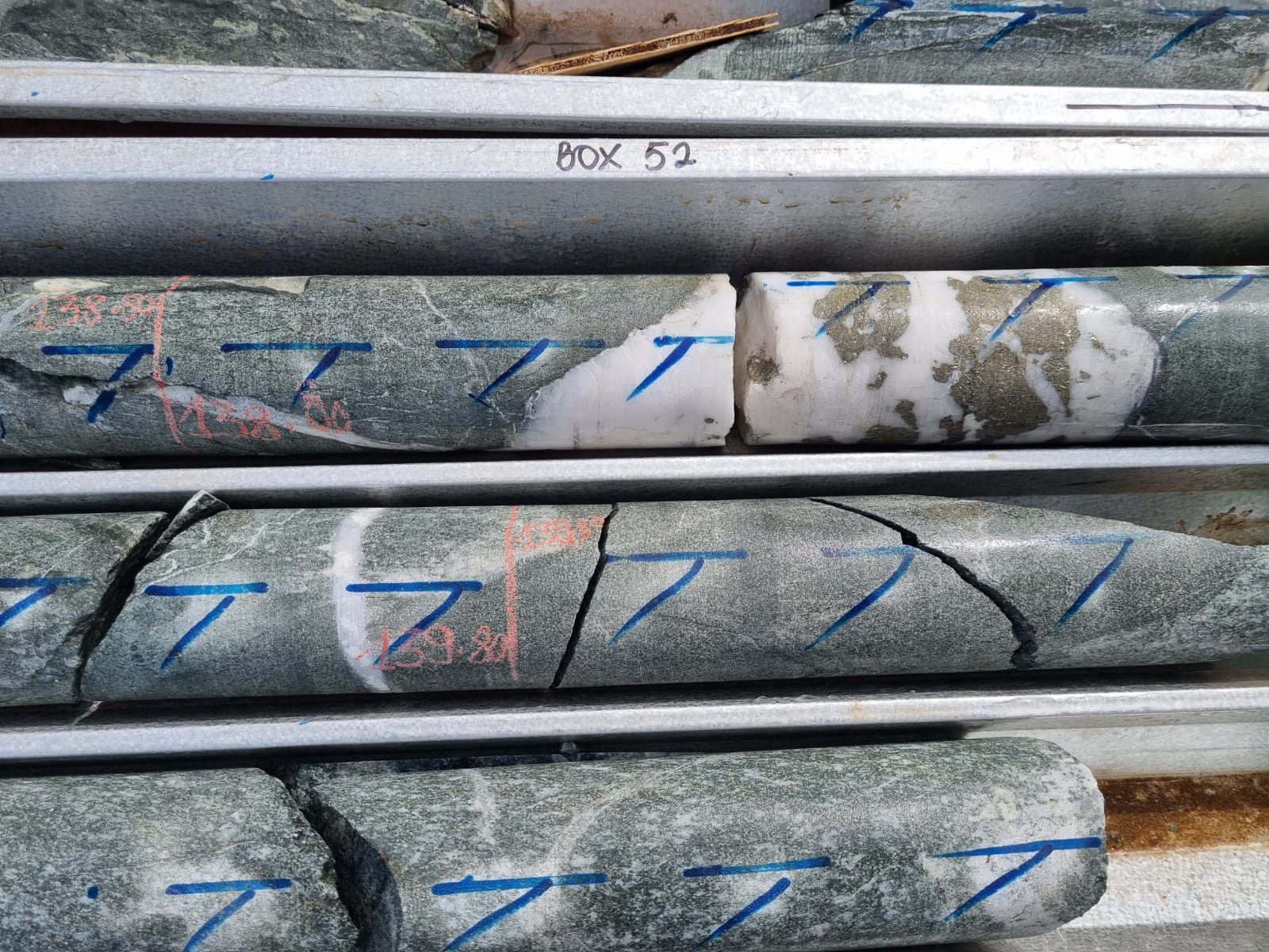Drill core from BBDD050 – part of the high-grade 14.80m at 4.27 g/t Au intersection