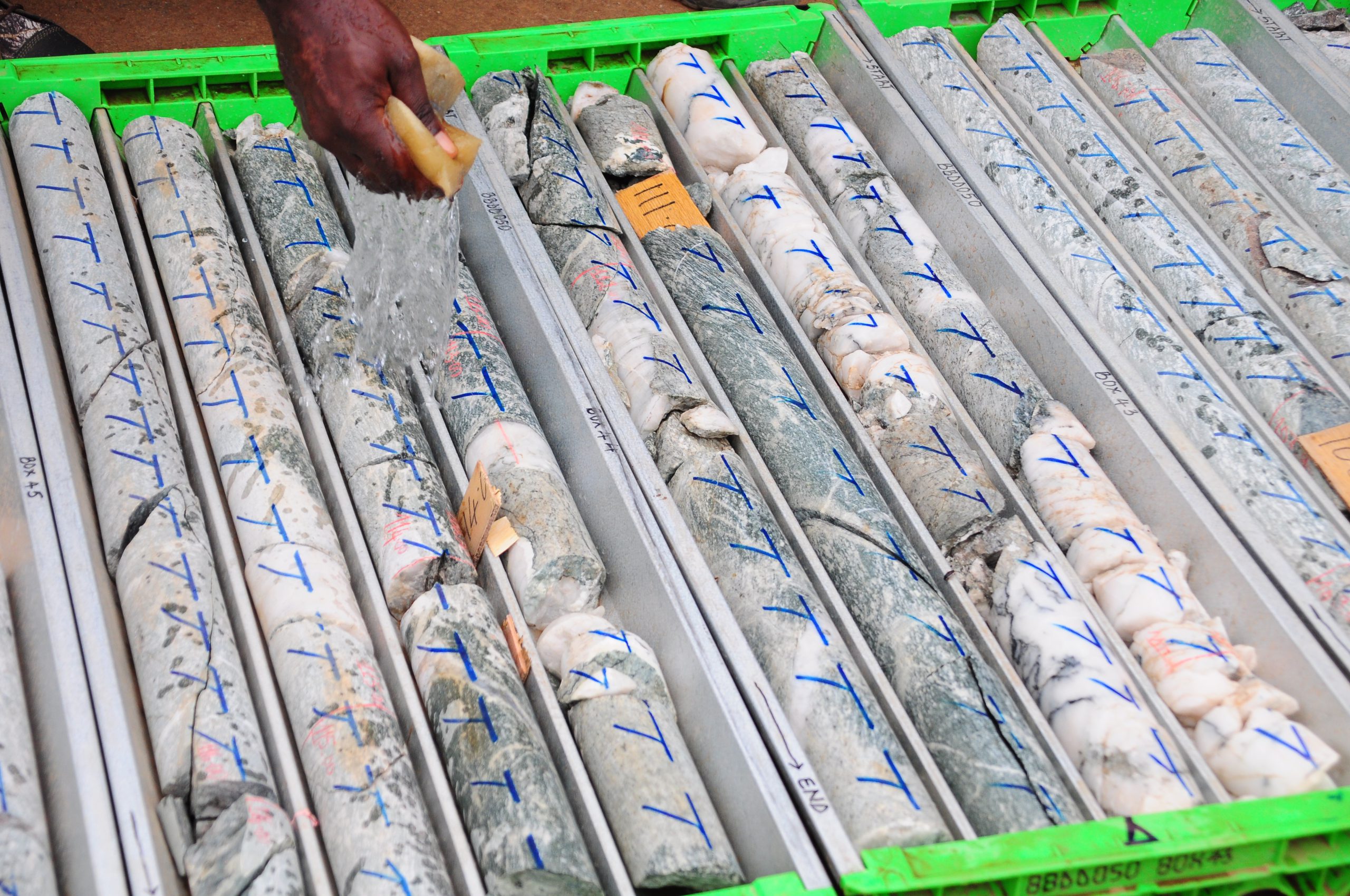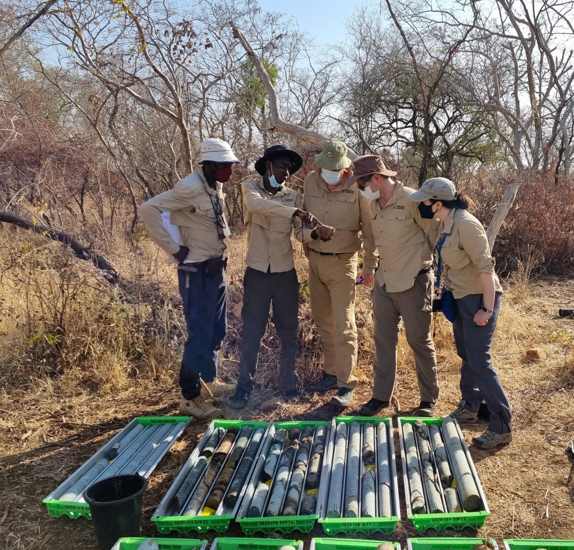 Exploration Manager Abdoul Mbodji and Executive Director of Exploration an Business Development Claire Bay present and discuss Phase 4 drill core rig-side with former Minister of Mines Gabriel Ndoke and a delegation from the Ministry of Mines