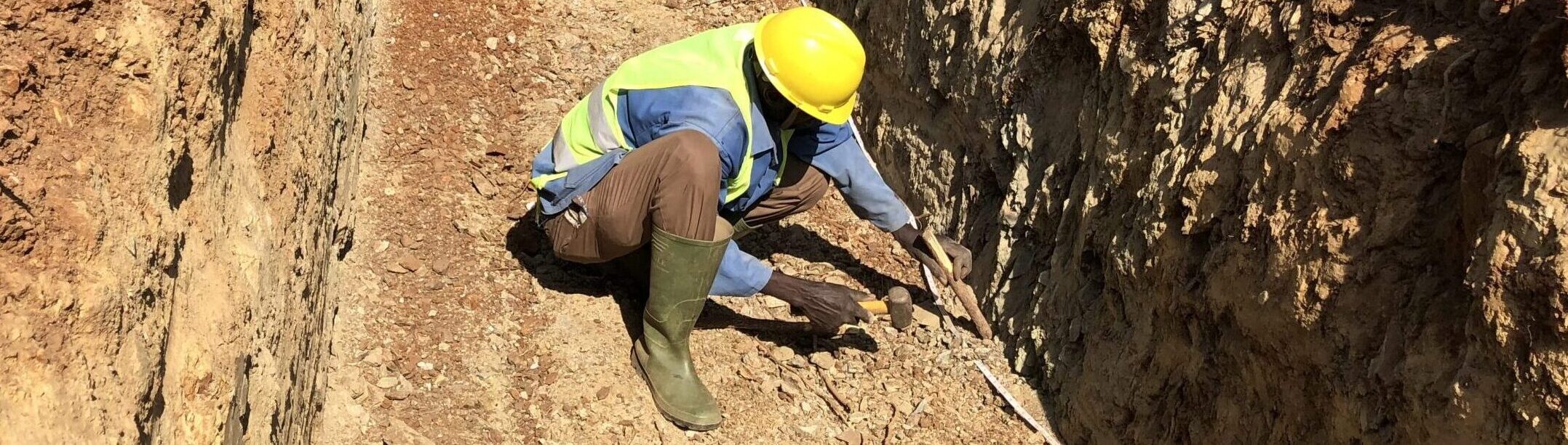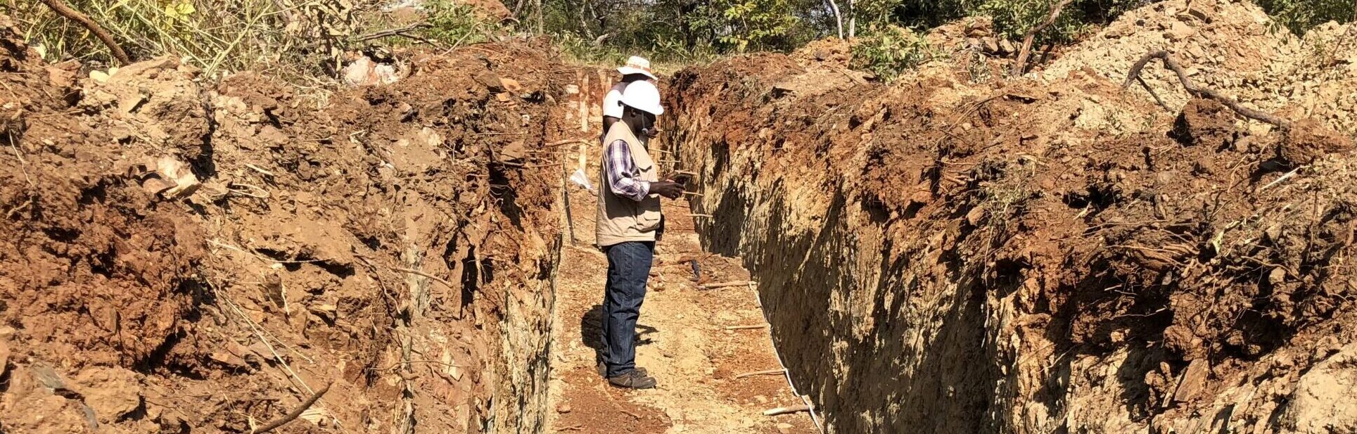 Marking-out trench sample intervals at Bakassi