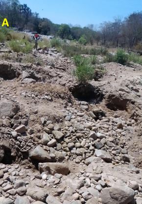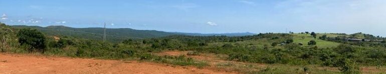 Panoramic view of one of the main drainage basins at Gamboukou with lateritic material on topographic highs
